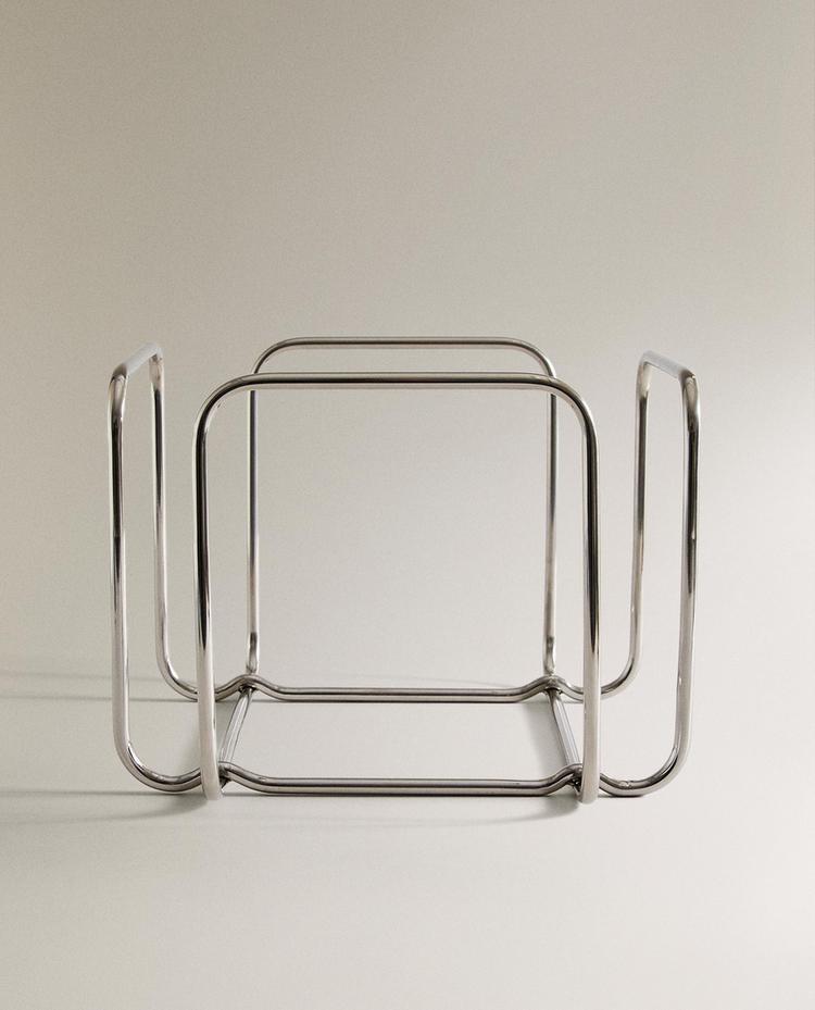 Organitzador de vinils d'acer inoxidable cromat, resistent i de disseny obert. Permet col·locar els discos en posició vertical, mantenint-los alineats, accessibles i protegits.