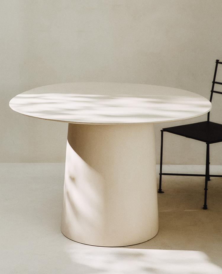Taula rodona de ciment, ideal per a interior o exterior, 115cm de diàmetre, és desmuntable.