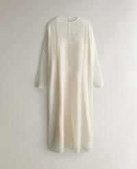 La prenda exterior presenta un diseño amplio y etéreo, con mangas sueltas que aportan movimiento y un acabado sofisticado. El camisón interior, de líneas limpias y minimalistas, completa el conjunto aportando comodidad y equilibrio.