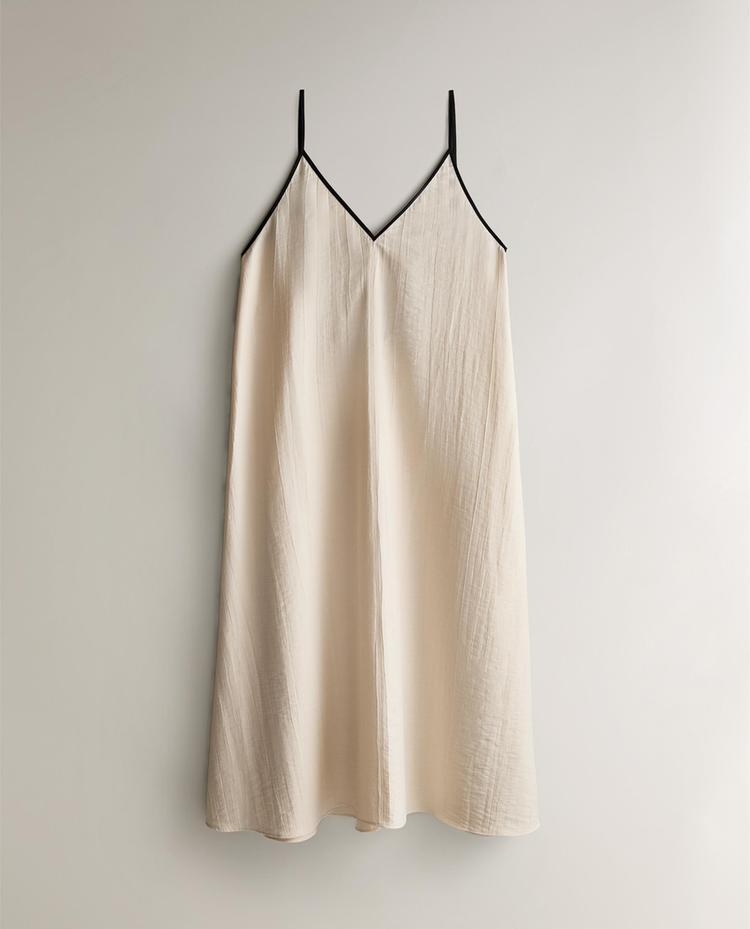 Camisón de corte midi, confeccionado en algodón, con diseño liso.