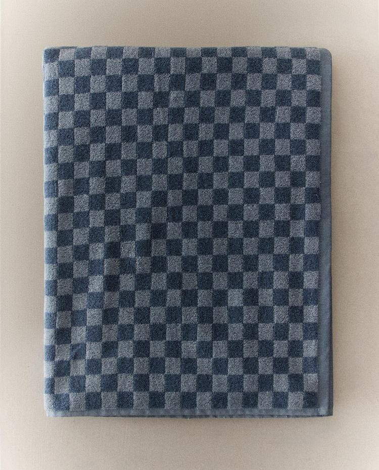 Bainugelako eskuoihala, kotoi kizkurrezkoa, damero karratuen diseinuarekin.