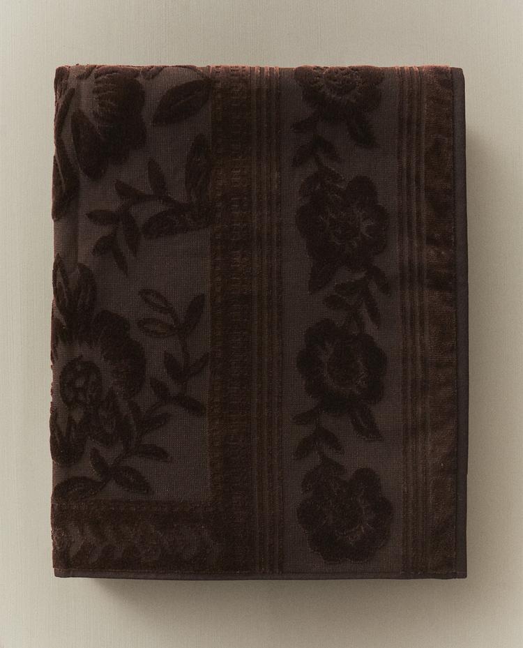 Belus kotoizko bainugelako eskuoihala, lore-jacquard estanpatuarekin.