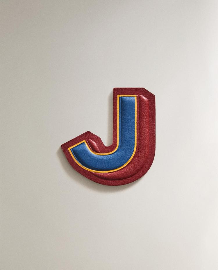 Larruz egindako adabaki termoitsasgarria, J hizkiarekin, tonu kontrastatuetan.