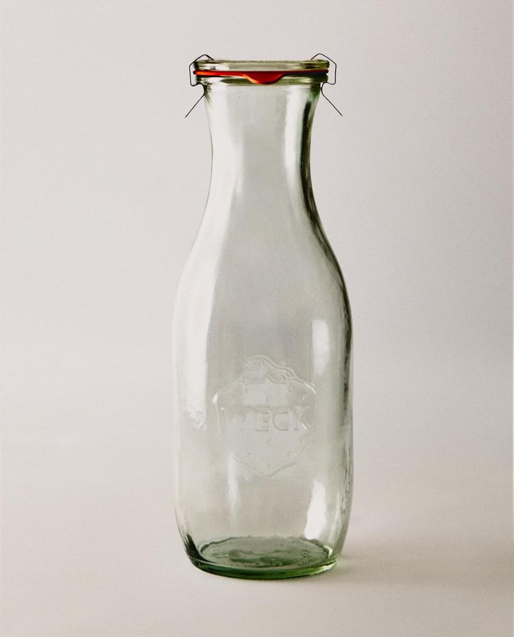 Beirazko botila, tapa hermetikoarekin, saltsak, pureak, zukuak edo etxeko irabiatuak gordetzeko. Beira erresistentez egina, esterilizatzeko, izozteko eta berotzeko egokia. Diseinu moldakorrak elikagai likidoak modu seguruan biltegiratu eta garraiatzeko aukera ematen du, kontserbazio naturala eta toxikorik gabea bermatuz.
