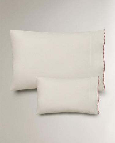Funda de almohada infantil confeccionada en algodón de 200 hilos con pespunte punto concha en el borde.