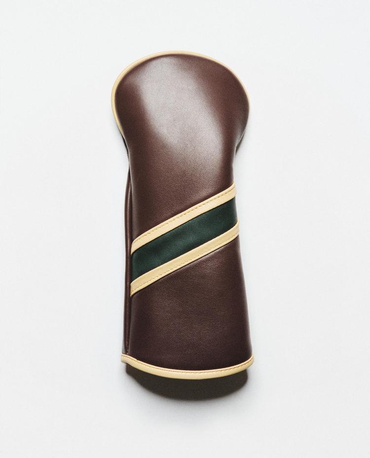 Funda para palo de golf tipo wood confeccionada principalmente en piel ovina. Diseño acolchado con ajuste elástico, que facilita la sujeción del palo. Detalle de bandas diagonales en contraste de color y acabados combinados.