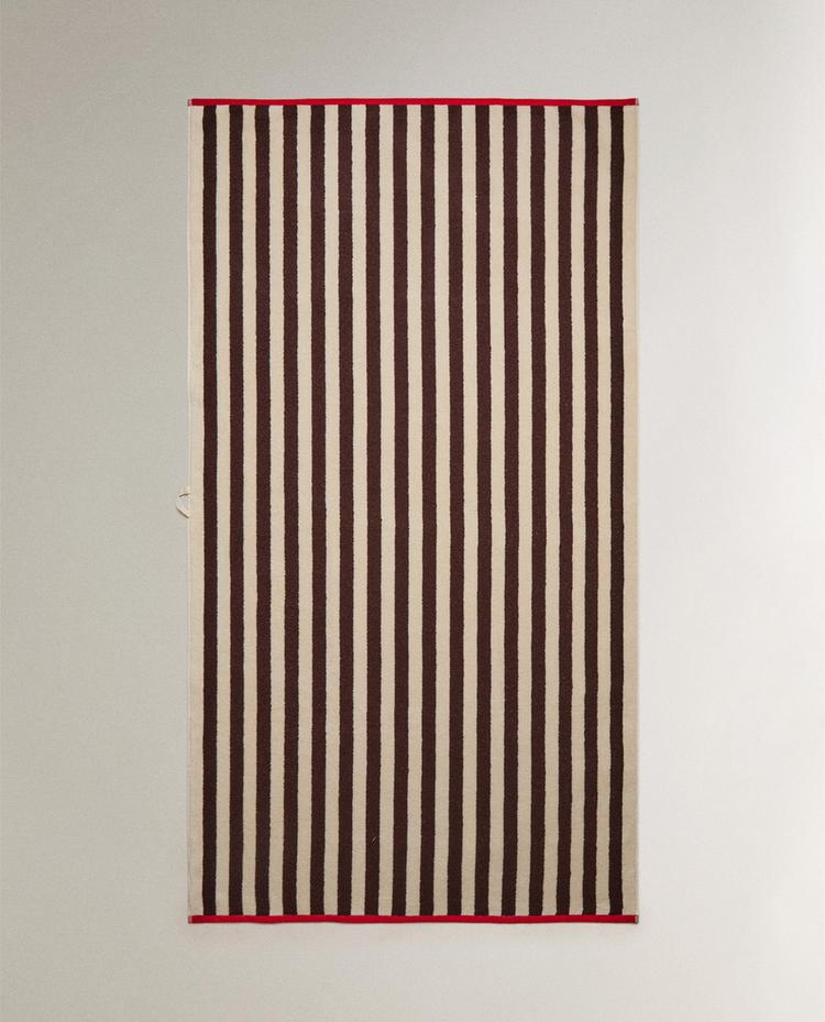 Banco apto para exteriores con estrutura e repousabrazos elaborados en metal lacado. O respaldo e o asento son trenzados.
