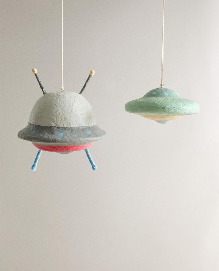 Pack de 3 estrellas confeccionadas en papel maché con motivo del espacio para colgar. Luminiscentes en la oscuridad.