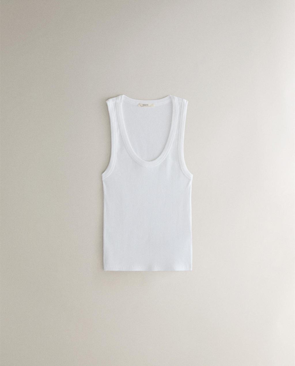 Top confeccionado con algodón, de color liso con tirantes finos.
