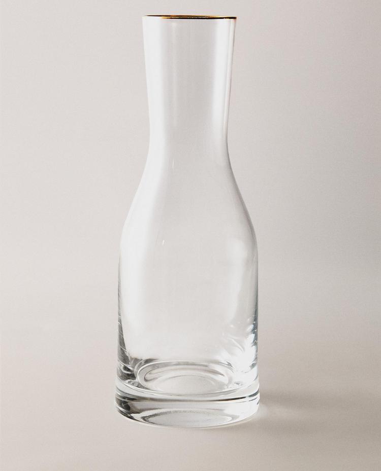 Bouteille ou carafe à vin en verre recyclable Bohemia Crystal avec bord doré.