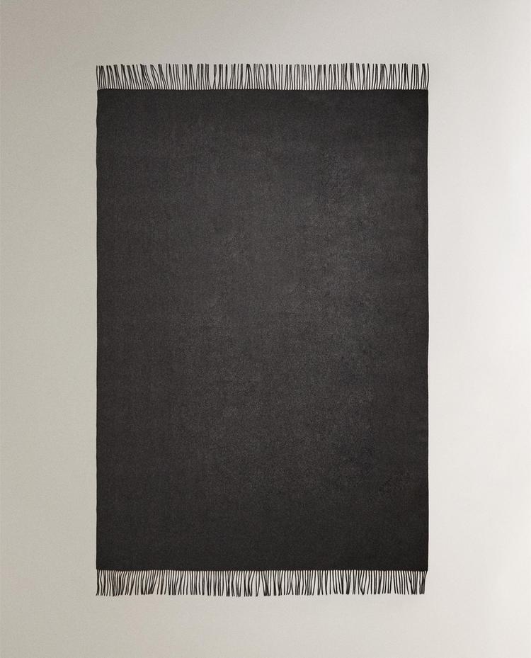 Couverture en cachemire de couleur unie, finie par des franges.