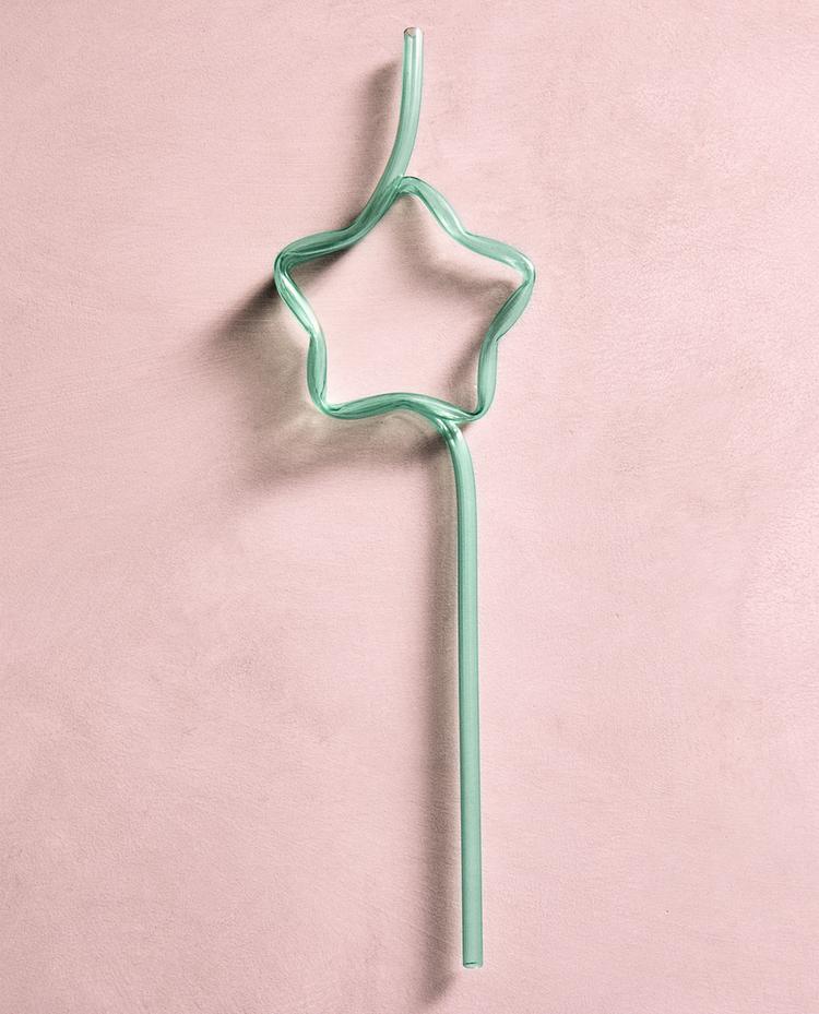 Paille pour enfant disponible en deux modèles : rouge en forme de cœur et vert en forme d'étoile.