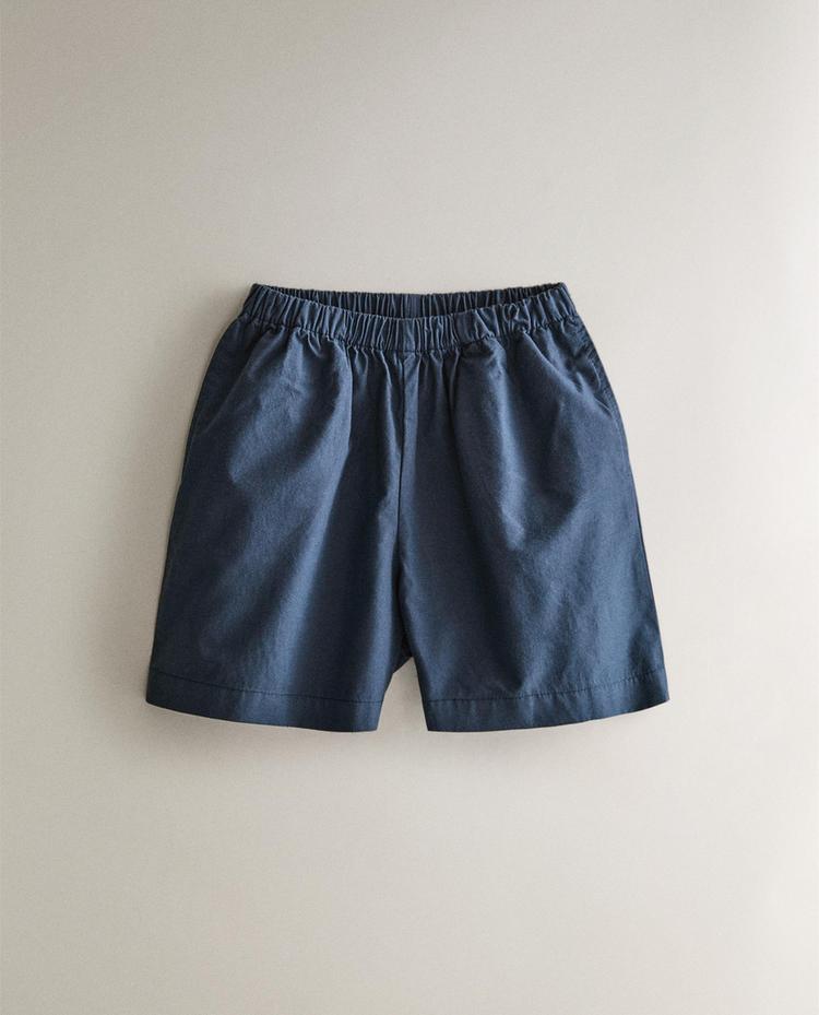 Bermuda pour enfant en coton uni. Taille élastique avec cordon de serrage sur le devant.