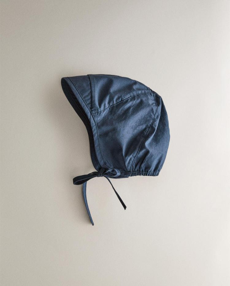 Bonnet de plage uni pour bébé en coton avec cordons de serrage.