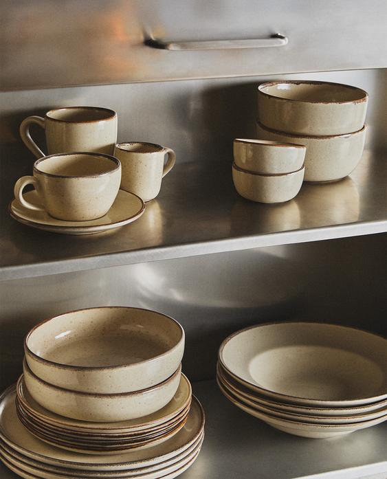 ASSIETTE CREUSE GRÈS 7,99 € ÉCRU|8262/201/959Assiette creuse en grès, avec finition effet vieilli et bord de couleur plus foncée.Ajouter
