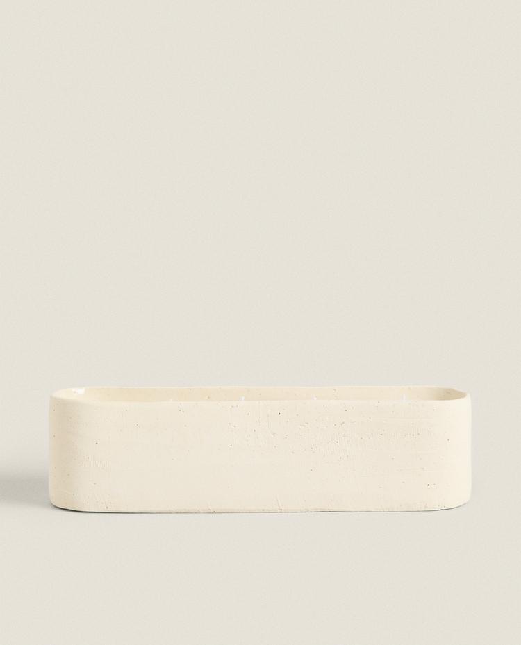 LONG CERAMIC DECORATIVE CANDLE £ 23.99WHITE|2391/065/250Candle in a long slim oval ceramic container with a plain neutral-toned finish. Features multiple wicks along its length for an even burn.HeightWidthDepth8 cm30 cm7 cm£ 23.99Enter quantity of units to purchase Quantity updated to 1 units Measurement guideAdd £ 23.99