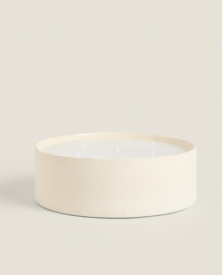 CERAMIC DECORATIVE CANDLE £ 39.99WHITE|2392/065/250Candle in a large cylindrical ceramic container with a plain, minimalist finish in neutral tones. It features multiple wicks for even burning.HeightWidthDepth8 cm25 cm25 cm£ 39.99Enter quantity of units to purchase Quantity updated to 1 units Measurement guideAdd £ 39.99