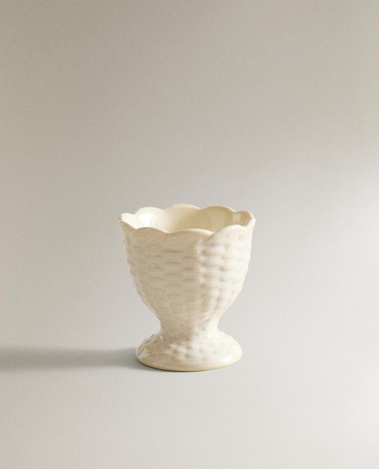 CERAMIC EGG CUP £ 5.99CREAM|4228/715/733Individual ceramic egg cup with a decorative raised design.HeightWidthDepth6 cm5 cm5 cm£ 5.99 Coming Soon Measurement guideShare item
