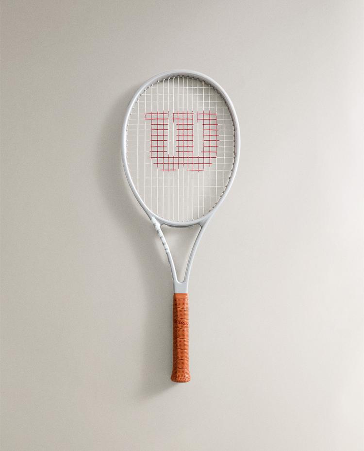 Wilson tennis racket. The selected racket is the Wilson Pro Staff 97 v14, one of the brand’s most iconic models and a staple in competitive play. It’s a precision-oriented racket ideal for advanced players. Slightly lighter than the Pro Staff RF 97, it still has a high weight that's concentrated in the handle. Designed with Paradigm Bending technology to optimise the bending profile between the shaft and hoop, this racket offers precision and pinpoint control. The fibres are arranged in a double braid at 45-degree angles, allowing the frame to breathe more upon impact. This increases dwell time while maintaining the signature feel and stability of the Pro Staff line.