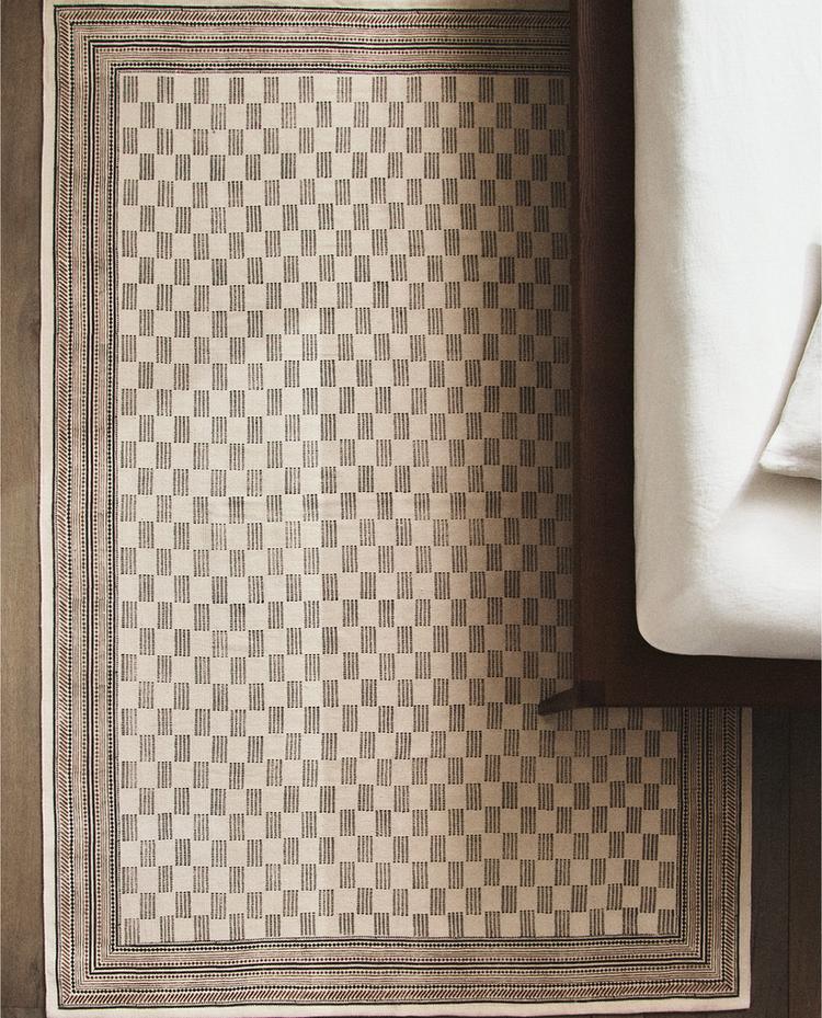 Βαμβακερό χαλί με σχέδιο block print.