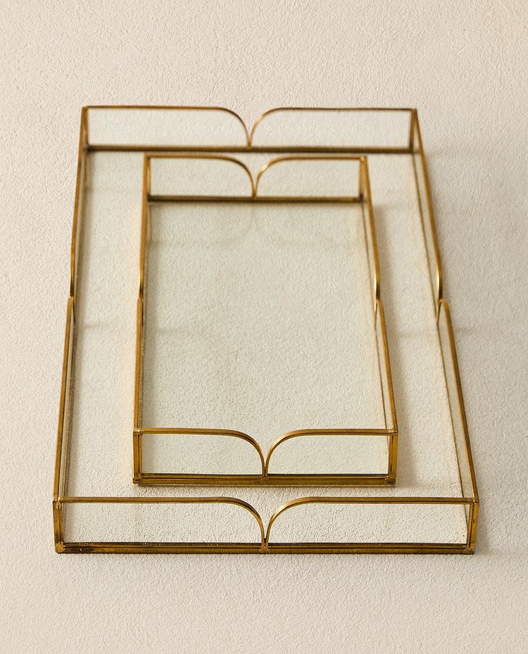 Ορθογώνιος γυάλινος δίσκος με μεταλλικό πλαίσιο. Διαθέσιμος σε δύο μεγέθη.