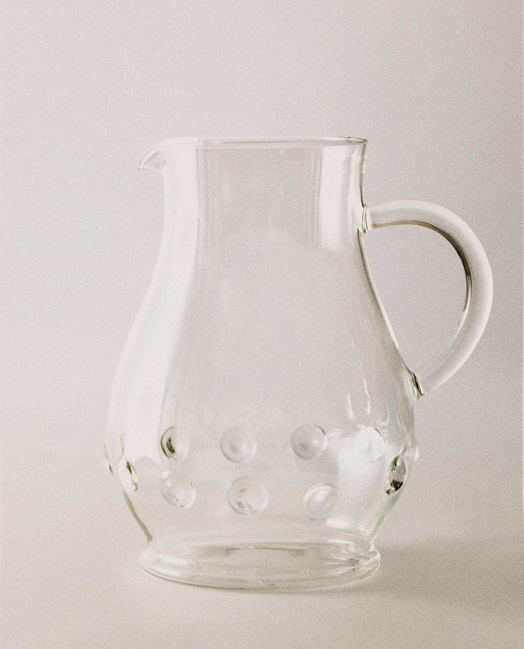 Κανάτα κατασκευασμένη από βοριοπυριτικό γυαλί με πλαϊνή λαβή και κουκκίδες σε ανάγλυφο.