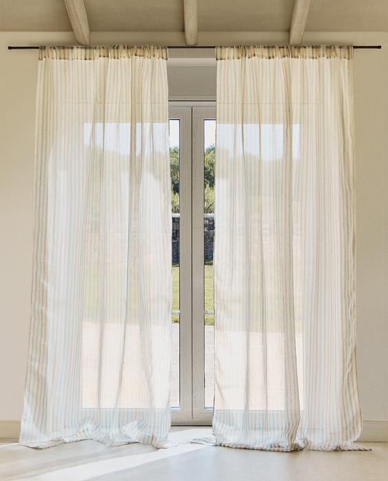 Κουρτίνα με πολύχρωμες ρίγες, σχεδιασμένη με θηλιές κουρτινόξυλου για εύκολη και απλή τοποθέτηση. Το ύφασμά της με χαμηλή αδιαφάνεια επιτρέπει την διέλευση ενός απαλού φωτός, δημιουργώντας φωτεινούς και φιλόξενους χώρους.