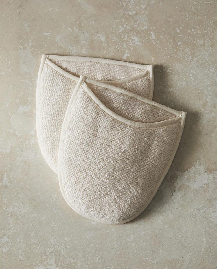 Πλενόμενα γάντια ντεμακιγιάζ από βαμβάκι μπουκλέ, για τη ρουτίνα περιποίησης του προσώπου.