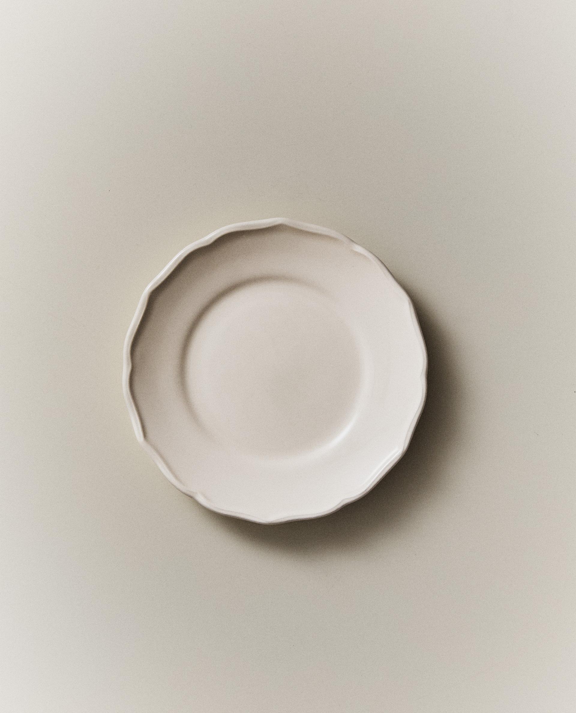The dessert and bread plates collection features lightweight formats and compact proportions that support a well-composed table setting without excess. These pieces adapt to everyday use as well as more curated arrangements, where size, edge profile and finish influence the overall aesthetic. Among the most common options are ceramic and stoneware plates, valued for their durability and visual presence. Glazed finishes provide a uniform surface that integrates easily with other tableware, while matte textures or subtle reliefs add depth without disrupting harmony. Glass designs are also part of the range, offering a lighter and more luminous table expression. Transparent, smoked or softly tinted finishes create contrast when combined with linen tablecloths, plain napkins or polished cutlery, resulting in a balanced and contemporary composition. In terms of design, the selection includes clean round plates alongside irregular shapes, slightly raised edges or more defined rims. These features are not only aesthetic: a structured edge supports precise plating of cakes, pastries or fruit, while flatter surfaces highlight presentation. The color palette moves through off-whites, beige, sand, soft greys and muted blues—tones that integrate easily into both everyday tables and seasonal settings. Plain finishes suit calm, minimal environments, while subtle patterns or stone-effect surfaces introduce visual nuance in a restrained way. Within this category, combining different styles enhances functionality. A smaller, minimal plate works well for bread and pastries; a wider design supports plated desserts; and textured or colored options can elevate more styled table settings while maintaining visual continuity. These pieces allow for a flexible table composition in both kitchen and dining areas, pairing with dinner plates, bowls, serving dishes or cups. The mix of materials, textures and tones helps build a cohesive aesthetic suited to daily use with a clear decorative intention. Choosing dessert and bread plates is a considered way to complete tableware with proportion and visual clarity. At Zara Home, this category presents designs created to accompany different dining moments while refining the overall presentation of the table.