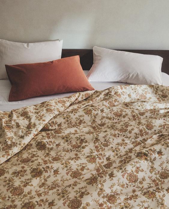 Παπλωματοθήκη από βαμβακερό σατέν 220 κλωστών με vintage λουλουδάτο σχέδιο.
