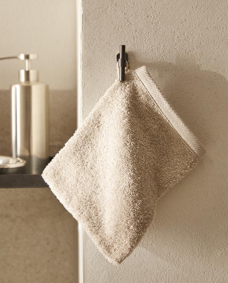 Kupaonska rukavica od pamučnog frotira guste pahuljaste teksture.