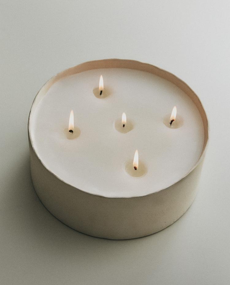 Svijeća u velikom cilindričnom keramičkom spremniku s jednostavnim, minimalističkim završetkom u neutralnim tonovima. Sadrži nekoliko fitilja za ravnomjerno sagorijevanje.
