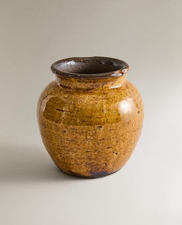 Ceramic vase. Rounded shape with a voluminous body and slightly irregular wide mouth.