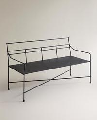 FORGED METAL BENCH AND STRIPED CUSHIONS