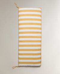 Slightly padded cotton bench seat cushion with a striped design and matching trim detail.