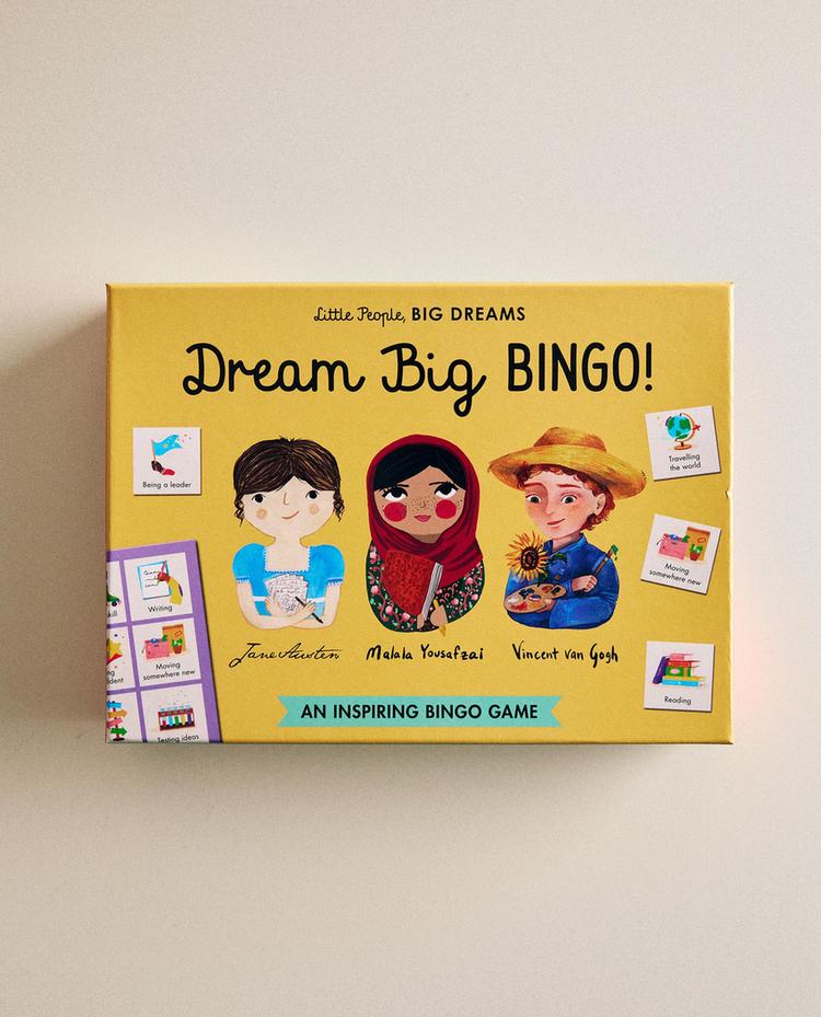 Kids' game for 2-6 players aged 4 and over. Choose one of the historical figures who inspires you most and collect all the qualities and experiences needed to help them achieve their dream. To win, be the first to complete your card and call out bingo. Includes 6 double bingo cards, 30 bingo chips, 54 cards, a fabric bag, and a small instruction booklet.