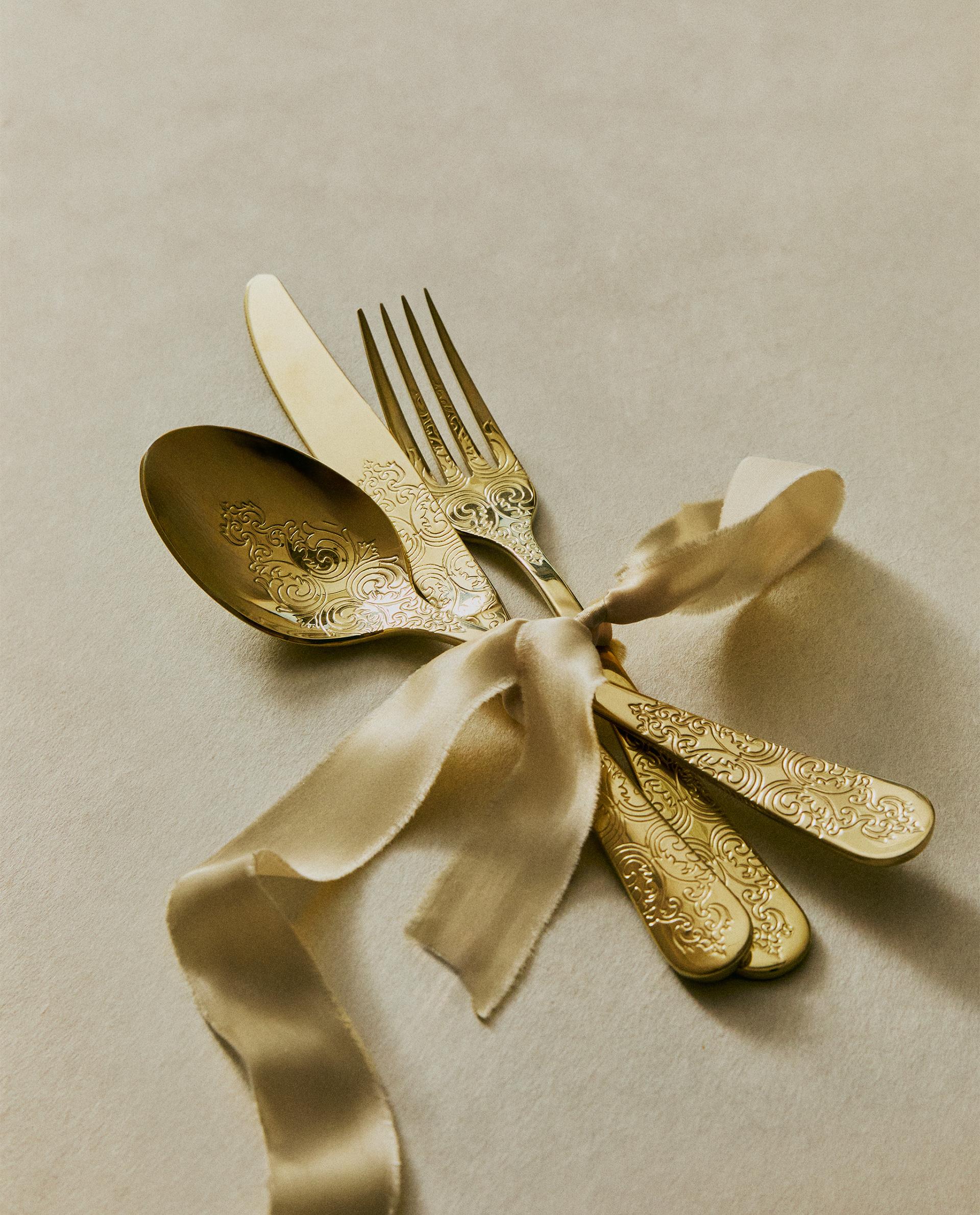 סט סכו"ם עם חלקים חרוטים