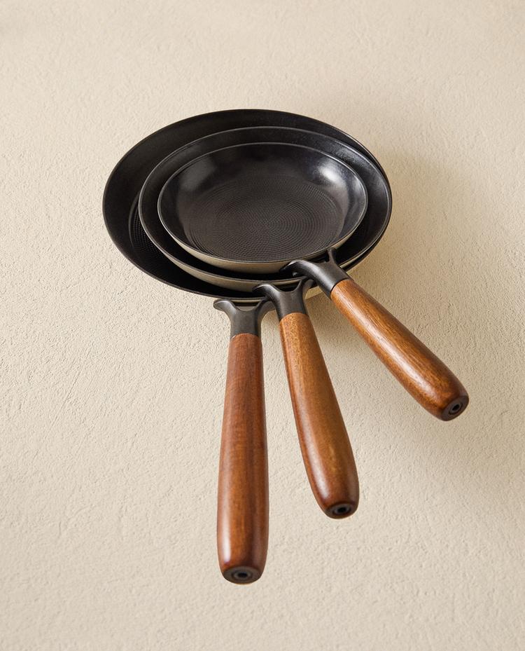 مقلاة حديد بمقبض من خشب السنط. متوافقة مع مواقد الغاز والكهرباء والحث الحراري والسيراميك والهالوجين.