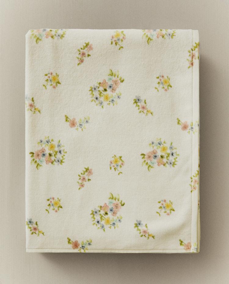 منشفة حمام مخملية بطبعة أزهار | Zara Home Iraq