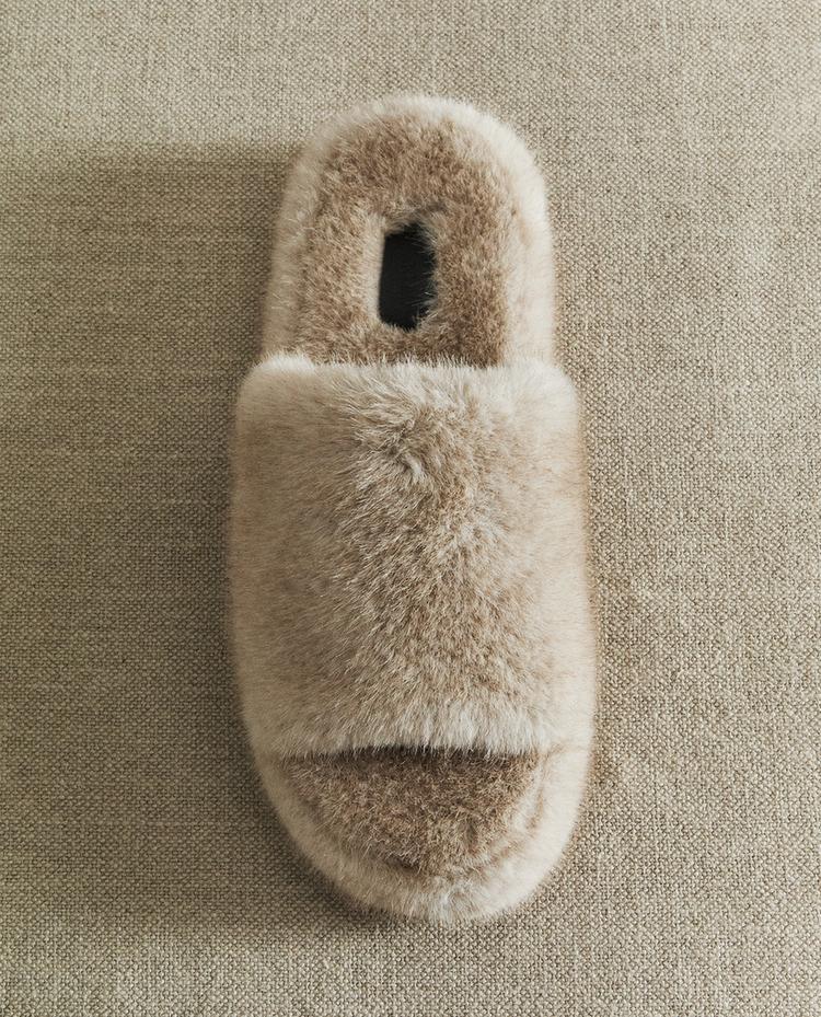 FAUX FUR FLATFORM SLIPPERS | Zara Home Iraq