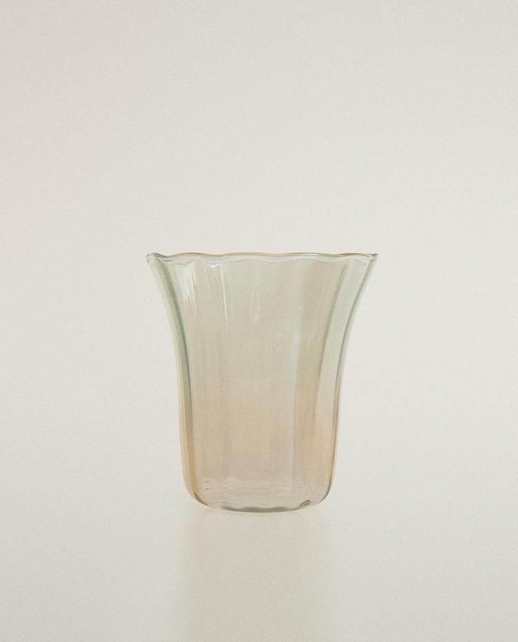 FLARED GLASS TUMBLER 15,000 IQDBLUE|0213/401/400Tumbler made of shiny translucent glass, with a flared design and a wavy top rim.Capacity: 300 mlHeightWidthDepth10 cm6 cm9.50 cm15,000 IQDEnter quantity of units to purchase Quantity updated to 1 units Measurement guideAdd 15,000 IQD