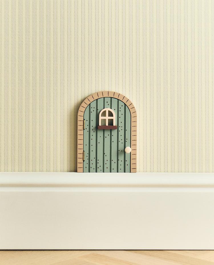 Mini wooden magic door, for placing on the wall of the kids' bedroom and letting their imagination run wild. Can be opened and closed. Includes four adhesive straps at the back.