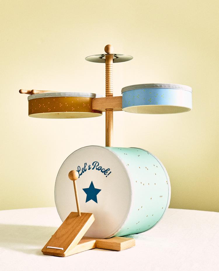 KIDS' WOODEN TOY DRUM SET INSTRUMENT