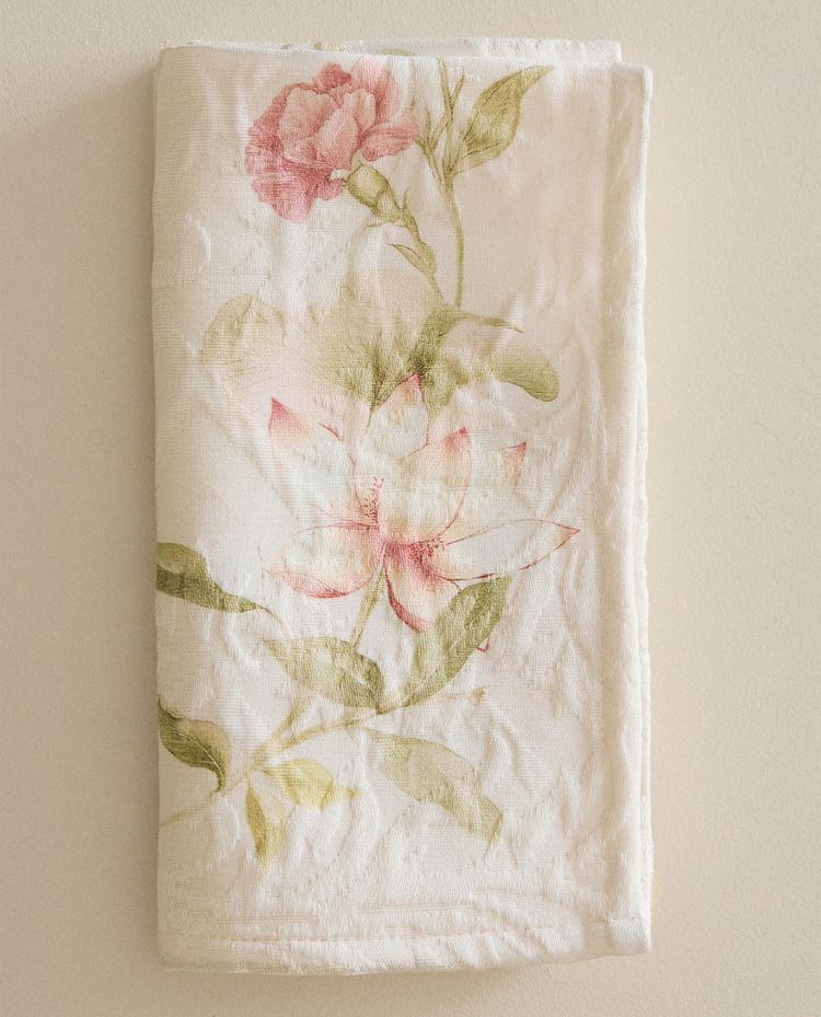 Napkins with a jacquard design and printed floral motifs. Sold in sets of 2.