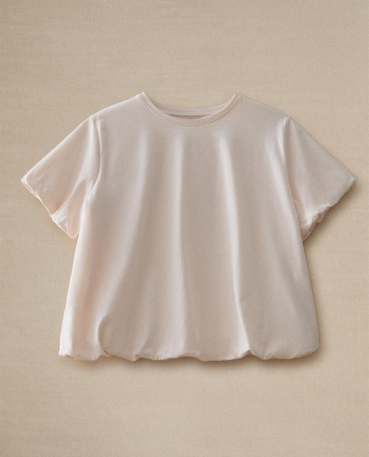 تيشرت مصنوع من القطن بأكمام قصيرة وزر خلفي للإغلاق وطرف سفلي مرن يضيف حجماً.