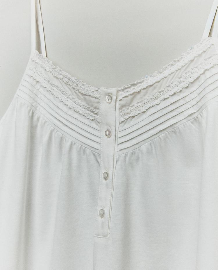 ثوب نوم قطني طويل بياقة دائرية وحمالات رفيعة.