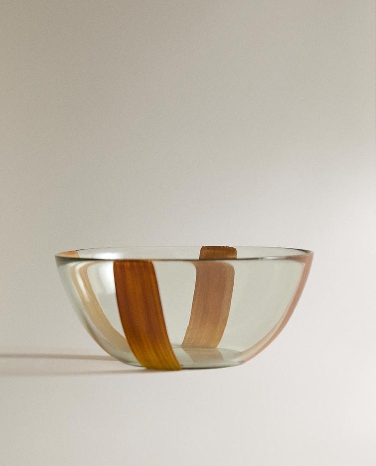 STRIPED GLASS BOWL 6.50 JODBROWN|0282/211/700Glass bowl with a painted irregular vertical stripe print design.Capacity: 425 mlHeightWidthDepth5 cm12 cm5 cm6.50 JODEnter quantity of units to purchase Quantity updated to 1 units Measurement guideAdd 6.50 JOD