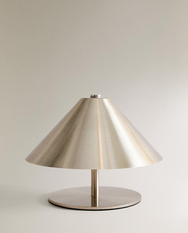 미니멀한 디자인의 철제 조명. 광택 마감 메탈릭 컬러 프레임. 슬림한 원형 베이스와 넓은 원뿔형 갓을 지지하는 중앙 스템 구조가 빛을 부드럽게 분산시킵니다. 조명은 USB 포트를 통해 충전이 가능하므로 전원이 연결되는 곳이라면 어디에서나 실용적이고 간편하게 사용할 수 있습니다. 완전히 충전하려면 약 1.5~2시간이 걸립니다.