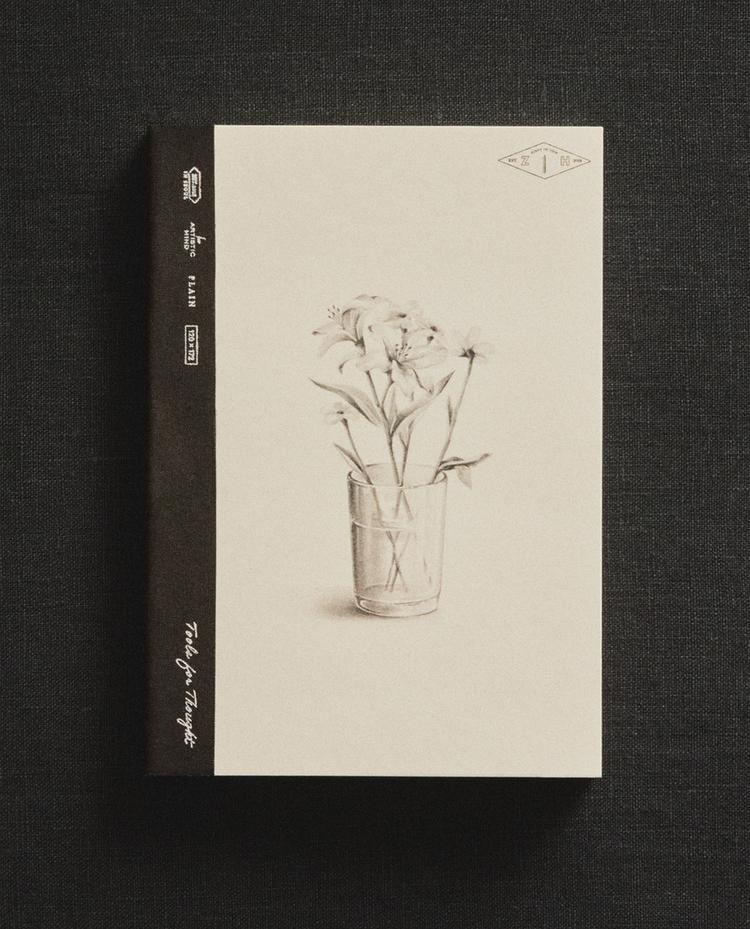 표지에 꽃이 담긴 화병이 그려진 노트로, 책등이 제본되어 있습니다. 글쓰기용으로 디자인되었으며 총 196페이지로 구성되어 있고, 첫 페이지에는 개인 정보를 기입할 수 있습니다.