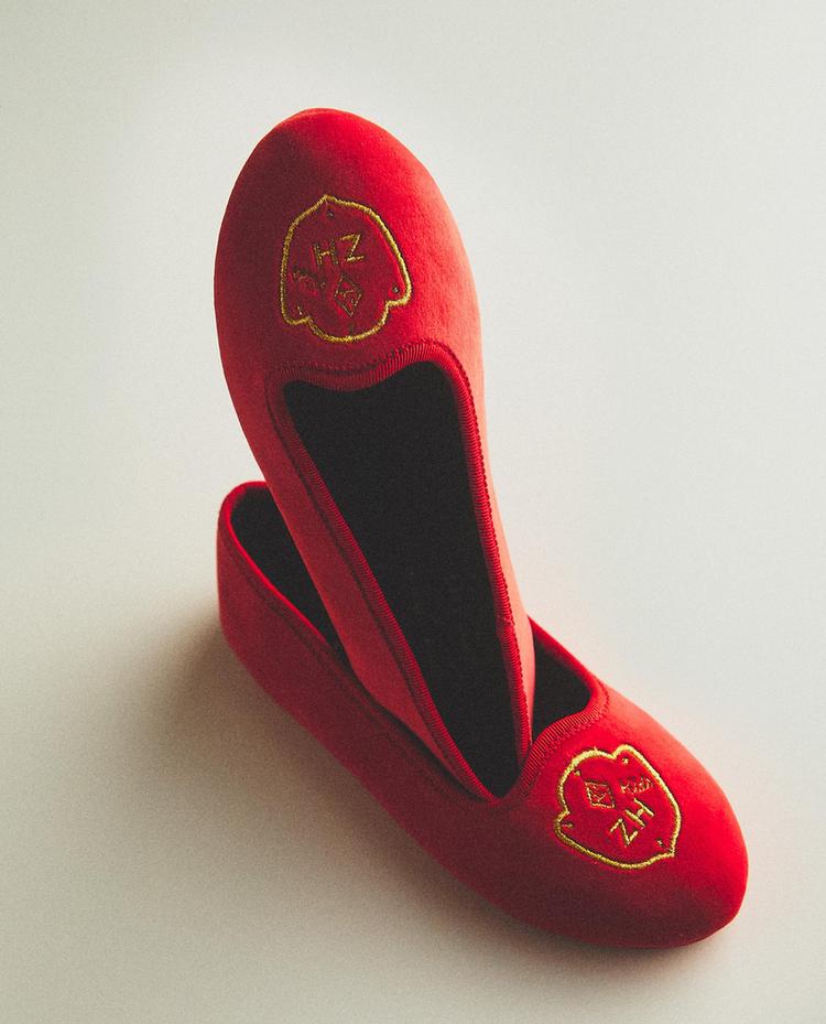 شبشب منزلي للأطفال مصنوع من قماش بمظهر مخملي. تفصيل درع مطرز.